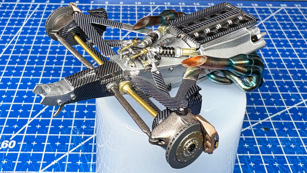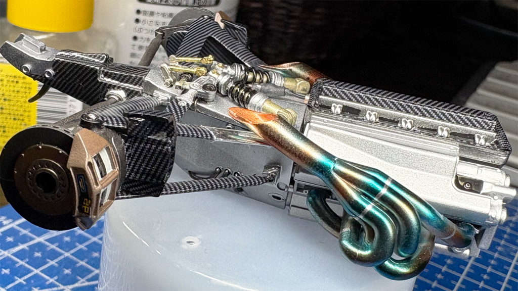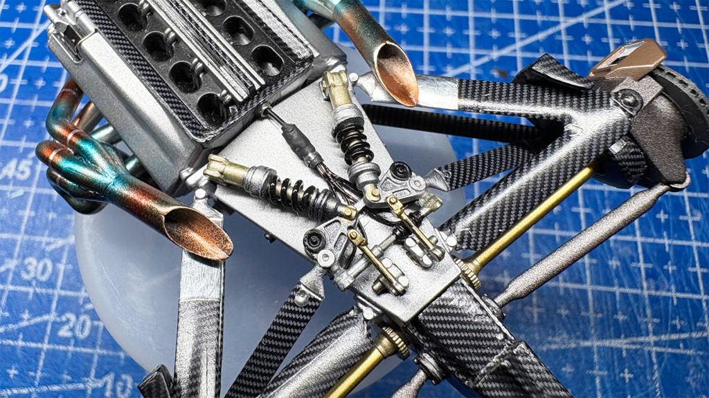 ボディーのクリア塗装を乾燥させている間にエンジン部分の仕上げを進めました。