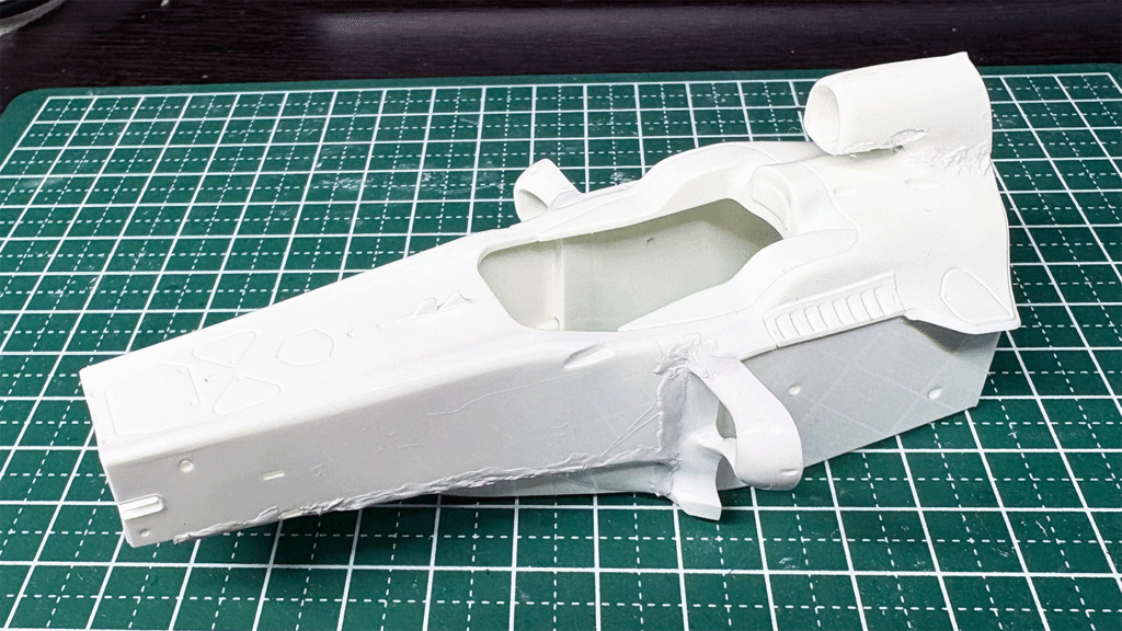 白ランナーを細かく切って流し込みタイプの接着剤に混ぜて接着パテを作ります。
