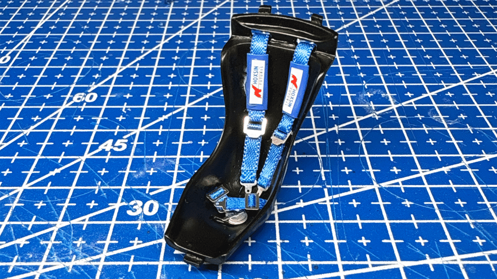 タミヤシートベルトAセットと3mmサテンリボンでシートベルトを作りました。