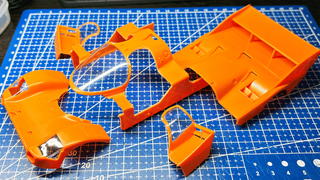 タミヤ1/24ポルシェ962イェーガーマイスターを元にフルビュー化していきます。